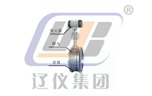 由于旋渦分離在柱體兩側產(chǎn)生壓力脈動,探頭體產(chǎn)生交叉變應力,埋設在探頭體內(nèi)的壓電晶體元件受交變應力作用而產(chǎn)生交變電荷。檢測放大器將交變電荷進行變換處理后,輸出頻率與介質流速成正比脈沖信號,送至積算儀進行處理和顯示或輸出4~20 mA標準電流信號。